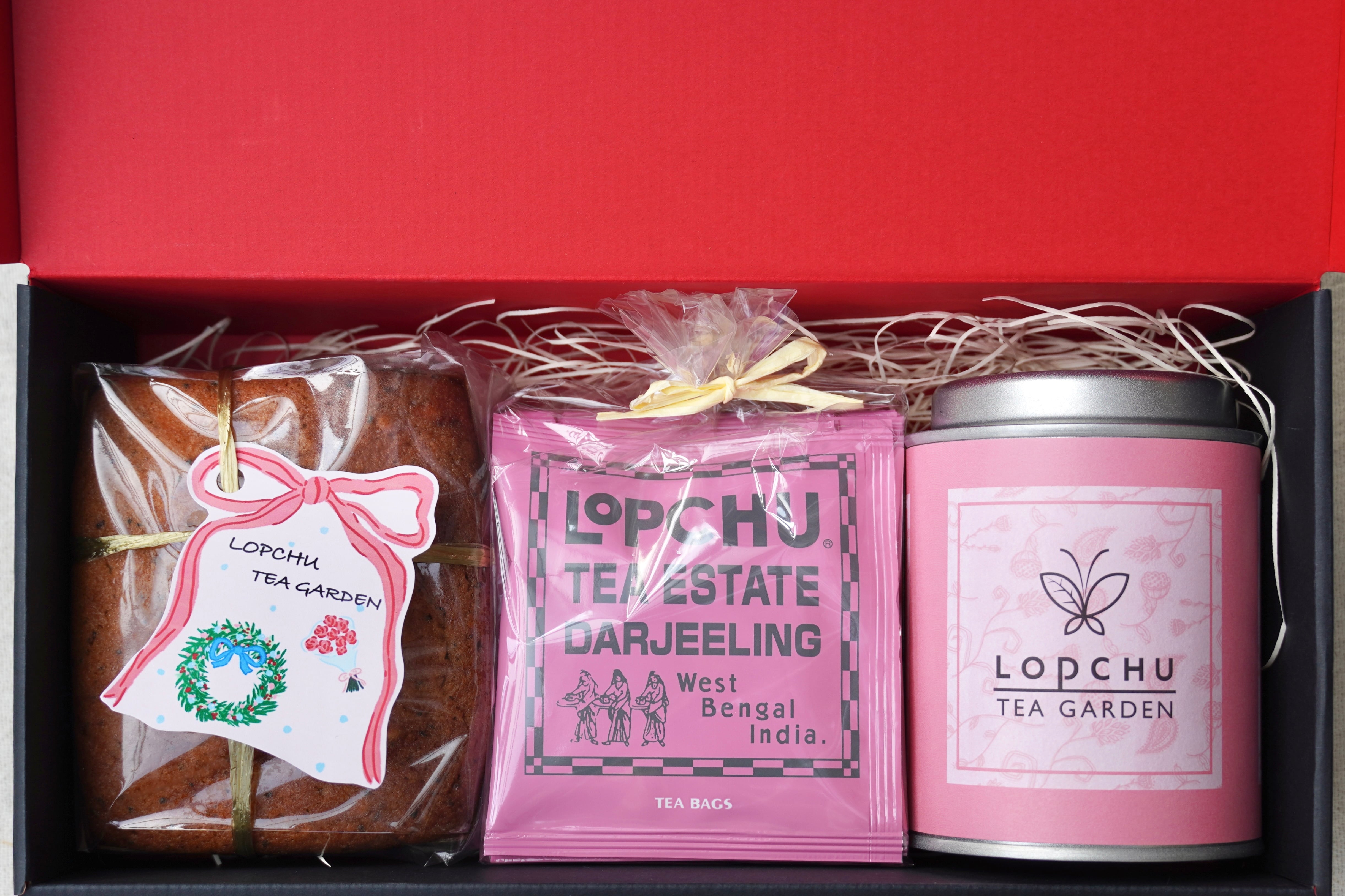 ロプチュー缶とロプチューティーバッグ10個とパウンドケーキのギフトです。